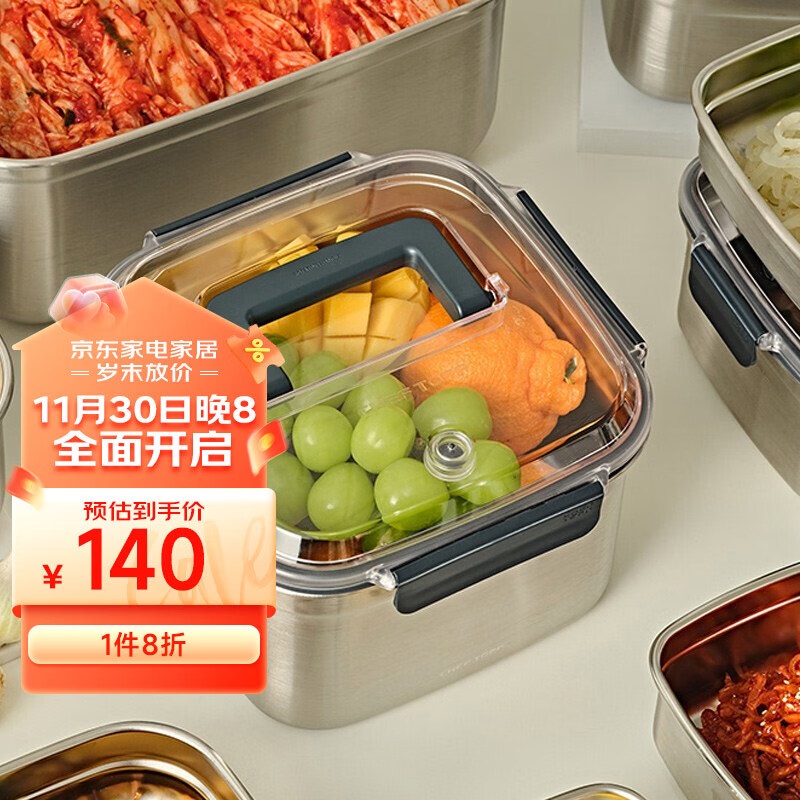 Glasslock进口不锈钢保鲜盒 大容量手提式冰箱收纳储存盒 7200mls440
