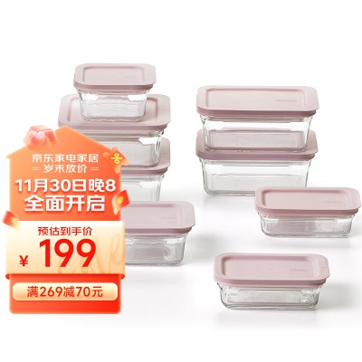 Glasslock进口钢化玻璃保鲜盒冰箱分类收纳盒耐热密封盒圆形3件套GL2074s440