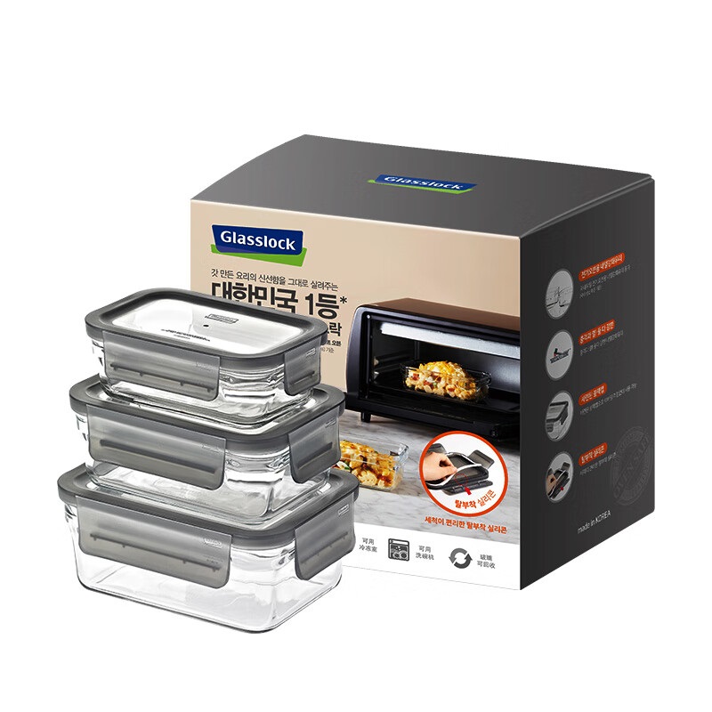 Glasslock韩国进口钢化玻璃分隔保鲜盒耐热微波炉饭盒s440