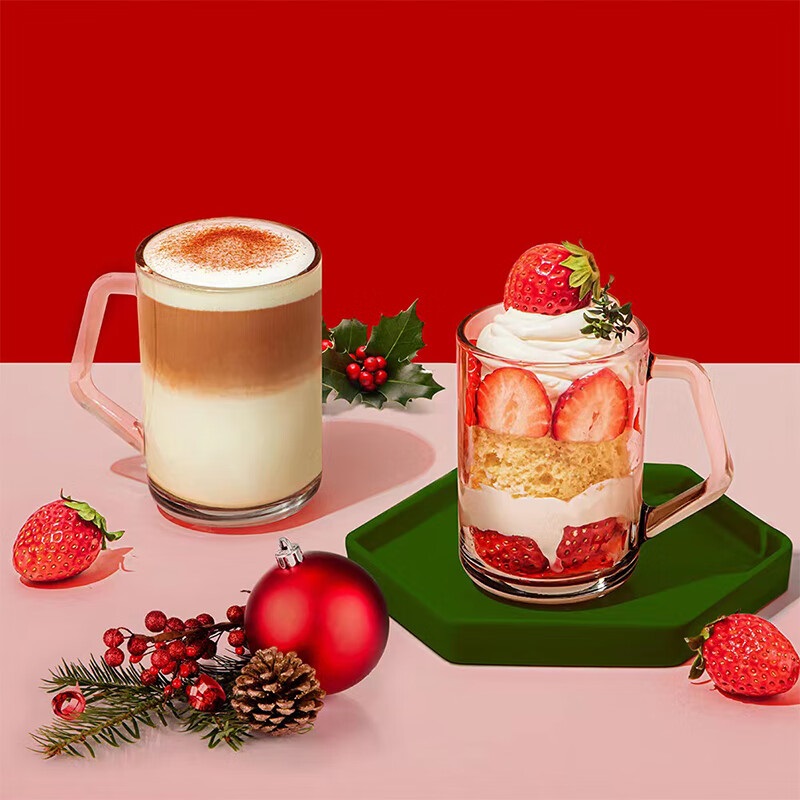 Glasslock耐热钢化玻璃杯家用带手柄喝水杯子大容量咖啡啤酒杯2件套s440