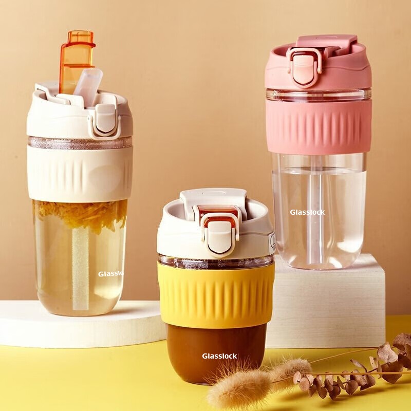 Glasslock玻璃杯茶杯双饮吸管杯男女学生水杯耐高温便捷泡茶杯咖啡杯GL485s440