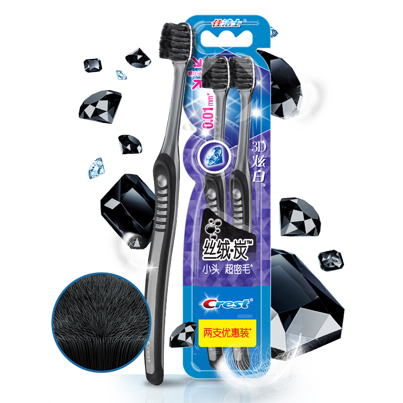 包装清单:佳洁士CREST丝绒炭护龈牙刷两支优惠装*1