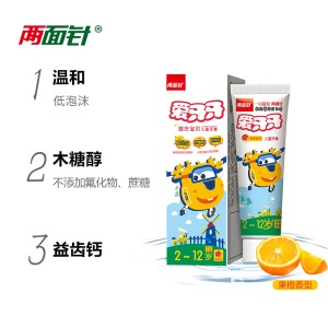 商品名称:两面针(LMZ)儿童牙膏 宝宝牙膏 婴幼儿牙膏 2-12岁 果橙味70g超级飞侠牙膏