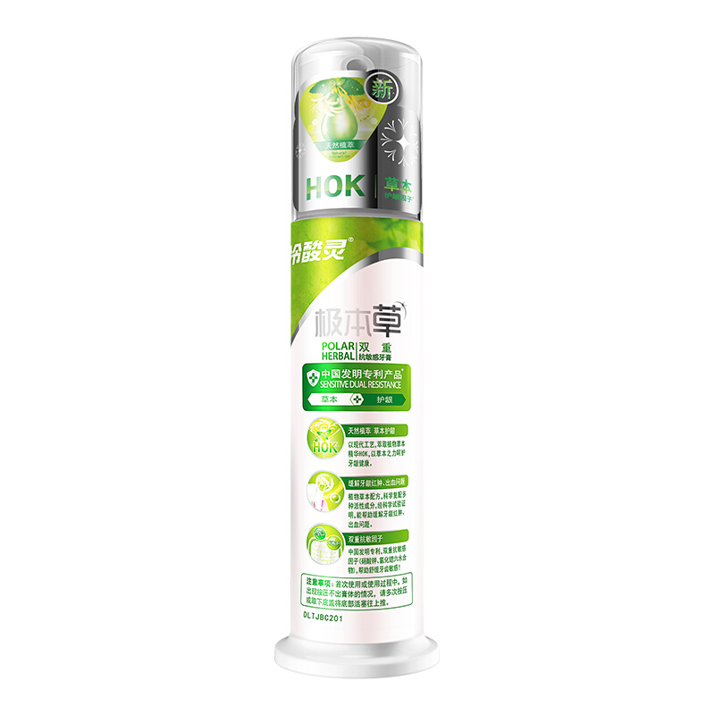 商品名称:冷酸灵极本草双重抗敏感按压式牙膏125g(草本源萃香型)清新口气 缓解牙齿敏感