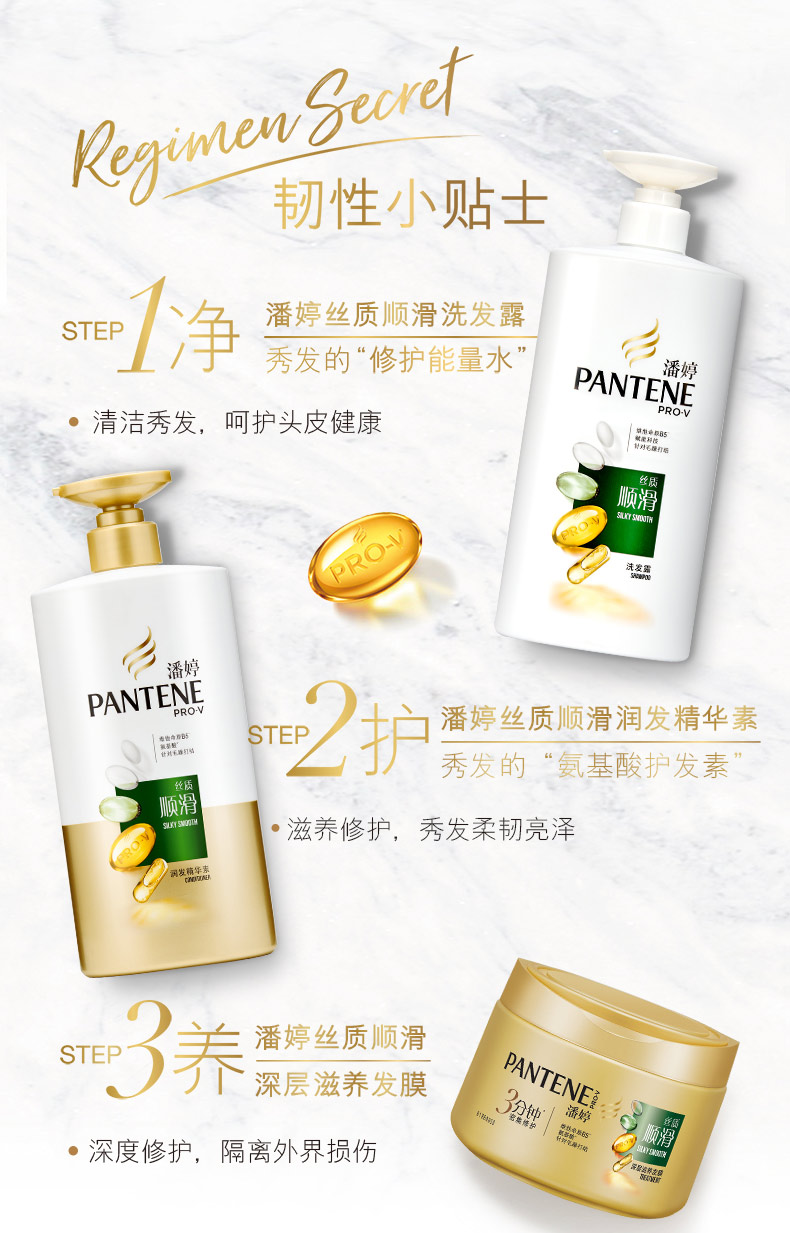 商品名称:潘婷丝质顺滑洗护套装 洗发水500ml *2 +3分钟护发素70ml(新老包装随机发货)